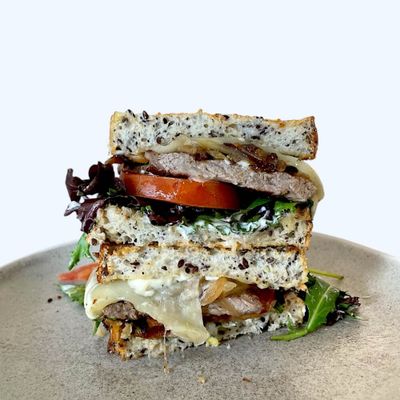 steak, provolone cheese, caramelised onions, lettuce, tomato & aioli