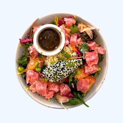 brown rice, pickled radish, pickled ginger, edamame, red cabbage, mix leaf, avocado, sesame served with a refreshing ginger, lime & tamari dressing.
