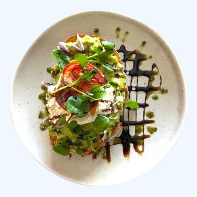 roast tomato, spanish onion, ricotta, balsamic reduction & basil oil on toasted sourdough (v)