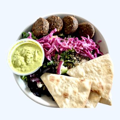 pickled cabbage, pita, house made green tahini dressing, mix salad & tabouli salad
